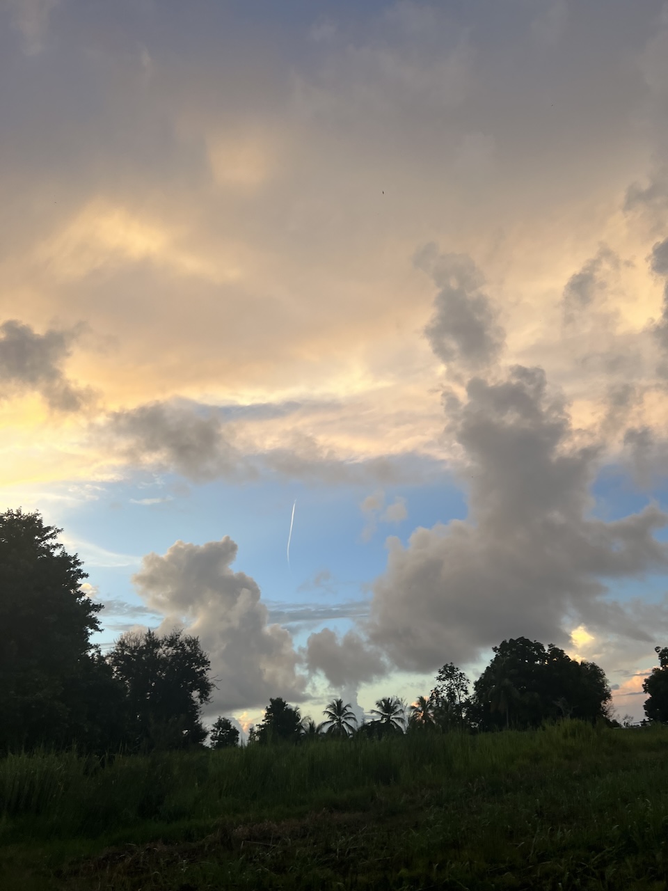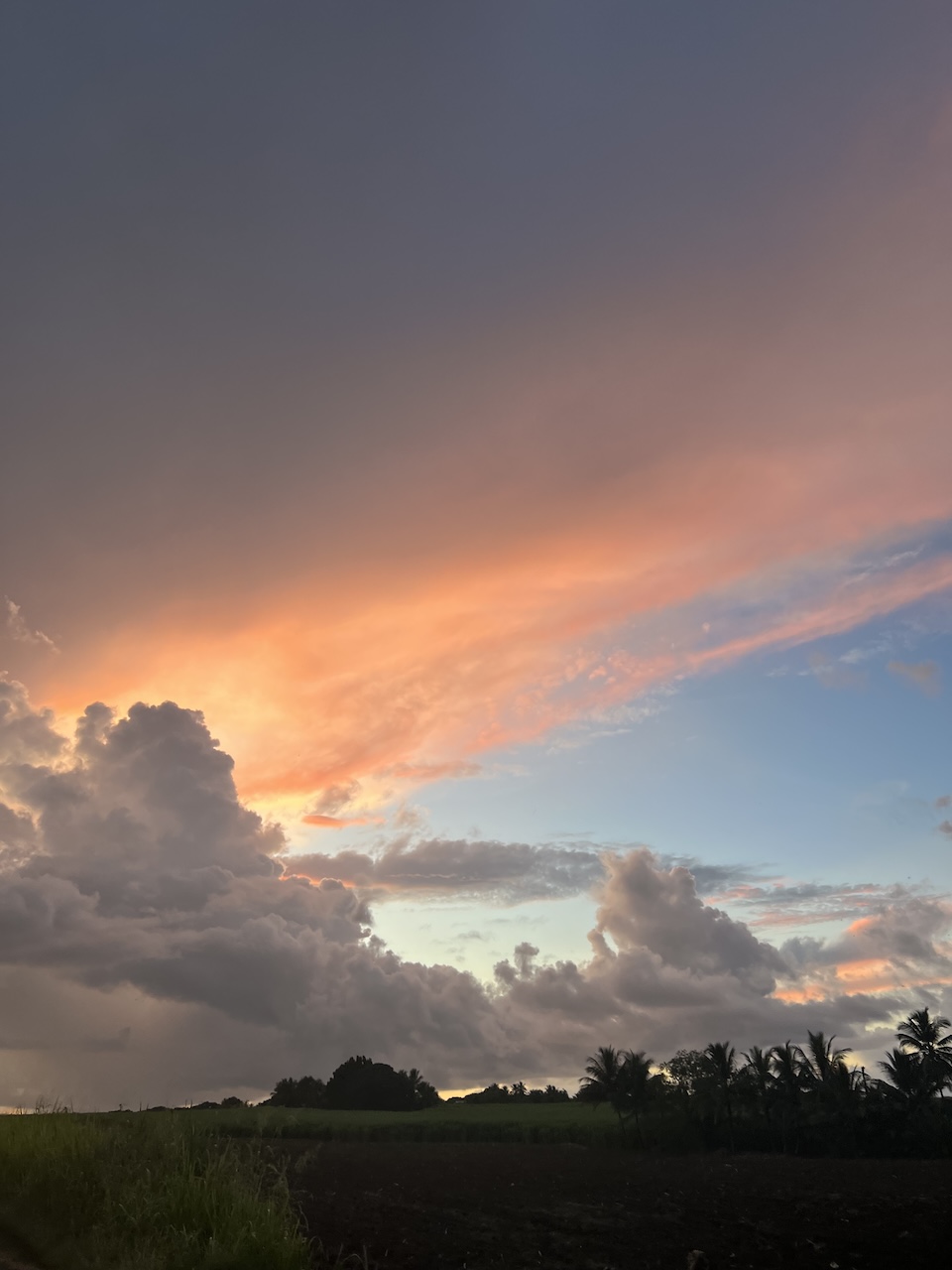 Alors que je suis en train de marcher à Birmingham à Baie-Mahault, je lève souvent les yeux au ciel, pour admirer le balai des nuages, la palette de couleurs qui évolue à mesure que le soleil se couche. J’aime beaucoup. Et je ne suis pas la seule, tant mes photos postées sur les réseaux sociaux recueillent des likes.