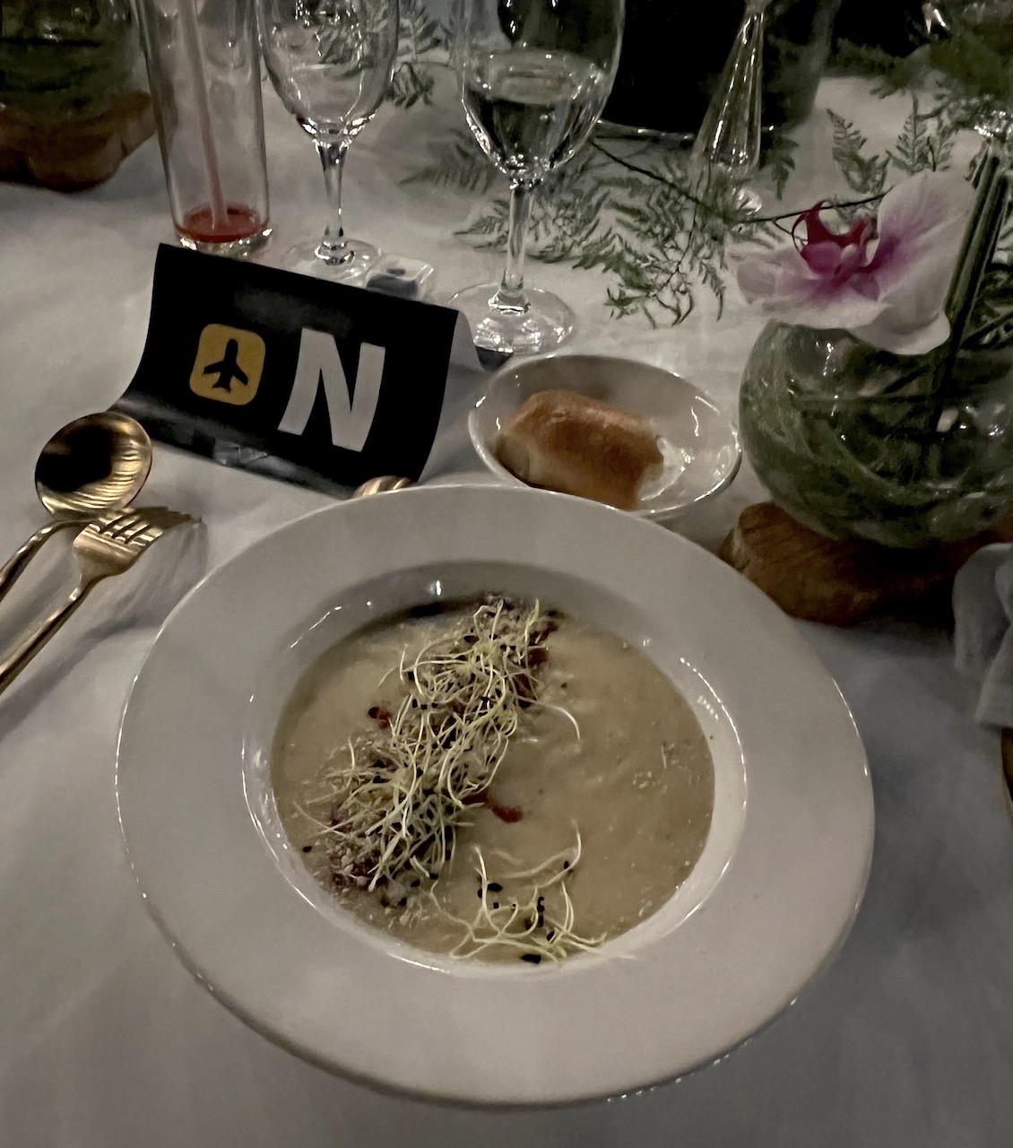 Après avoir admiré le décor et fait connaissance avec les autres invités, nous nous sommes attablés. Avez-vous noté l’élégance de cette table bien mise ?