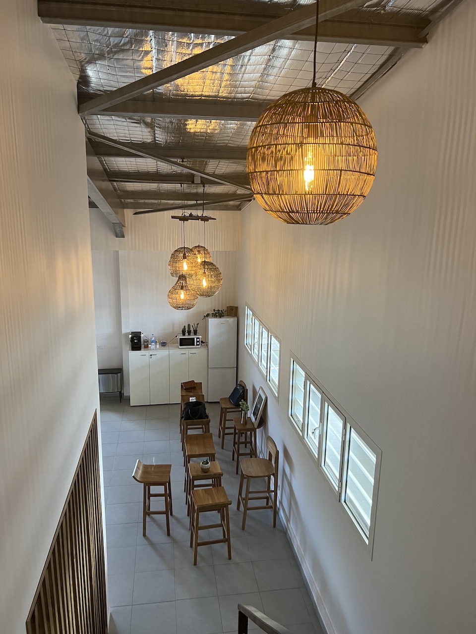 Ces locaux ne sont ni trop petits, ni trop grands. Ils possèdent chacun de beaux meubles qui donnent immédiatement envie de s’installer. Les couleurs sont chaleureuses et marquantes. Top !