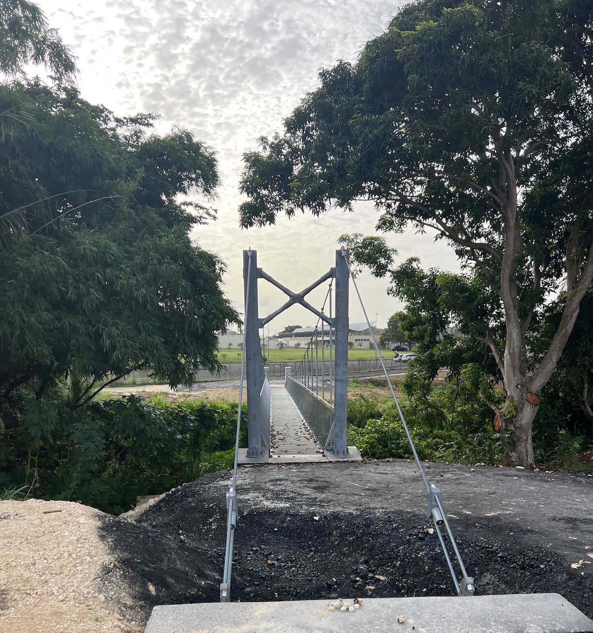 Nous avons donc testé un parcours derrière le lycée agricole et le vélodrome à Baie-Mahault. Il est très plaisant, grâce à la verdure bien présente. Toutefois, mon coup de coeur a été pour le pont suspendu. Il a constitué une belle surprise. Je vous livre la vidéo que j’ai publiée sur Instagram et quelques photos.