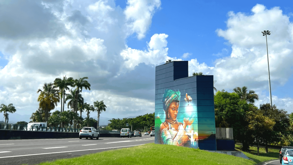 La première est celle qui est en couverture. Elle est située sur la rocade, à Destrellan, à Baie-Mahault. Elle est l’une des plus en vue, car qui veut aller sur la Basse-Terre est obligé de passer par ce chemin. De plus, à quelques kilomètres, est situé le principal centre commercial de l’archipel. Enfin, elle est colorée et interpelle forcément.